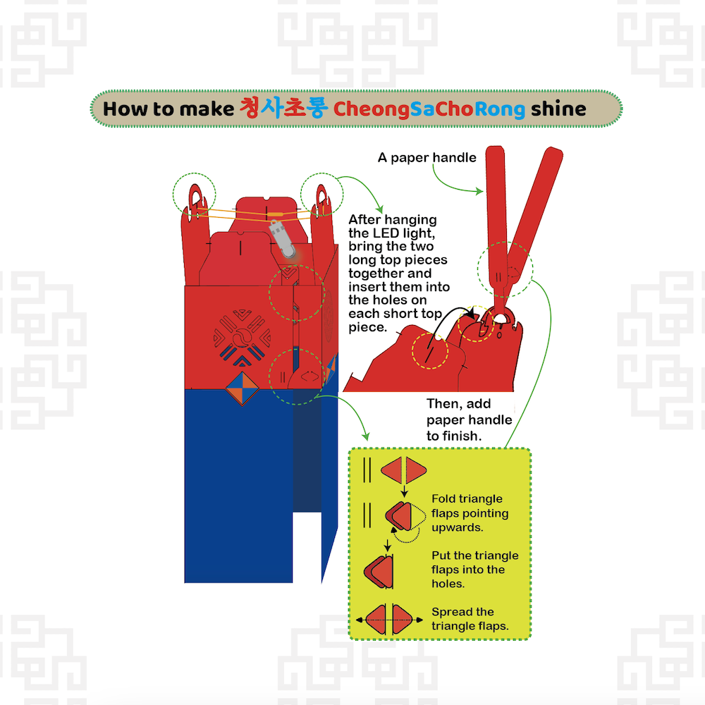 * Craft a Traditional Korean Lantern – Discover Korean heritage by assembling your own CheongSaChoRong (청사초롱), a red-and-blue lantern symbolising harmony, celebration, and tradition.