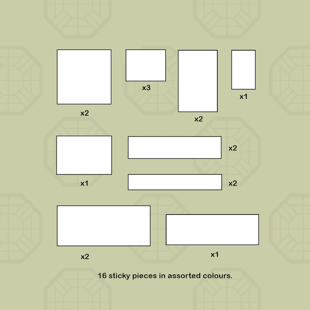 16 × sticky pieces in 9 assorted shapes and colours