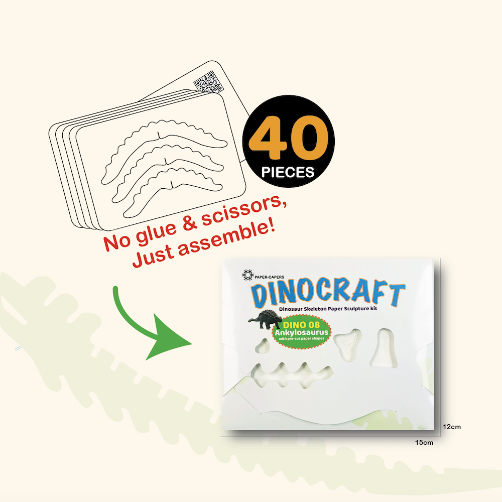 DINOCRAFT is a hands-on craft and learning series that lets kids and curious minds build their own collection of 3D dinosaur skeletons — no glue or scissors needed.