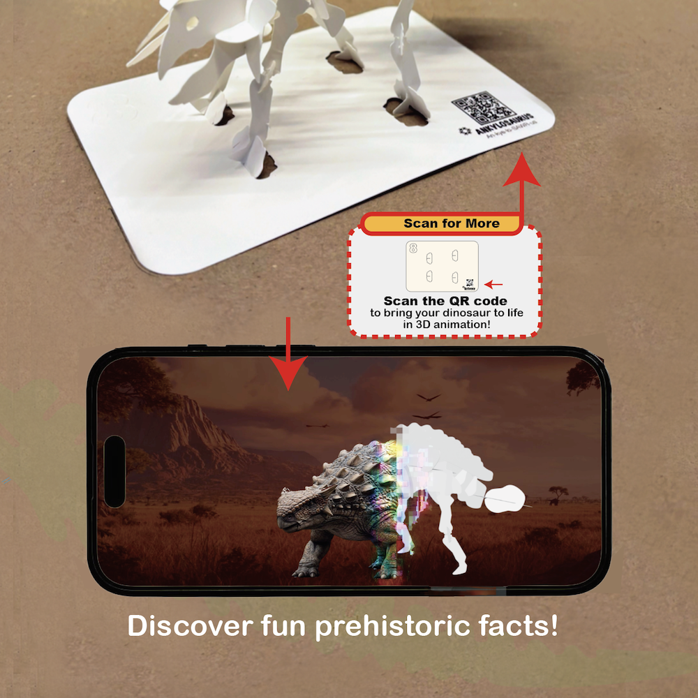 Each model is made from premium tree-free synthetic paper and includes a scannable QR code that unlocks a short animated video filled with educational facts.