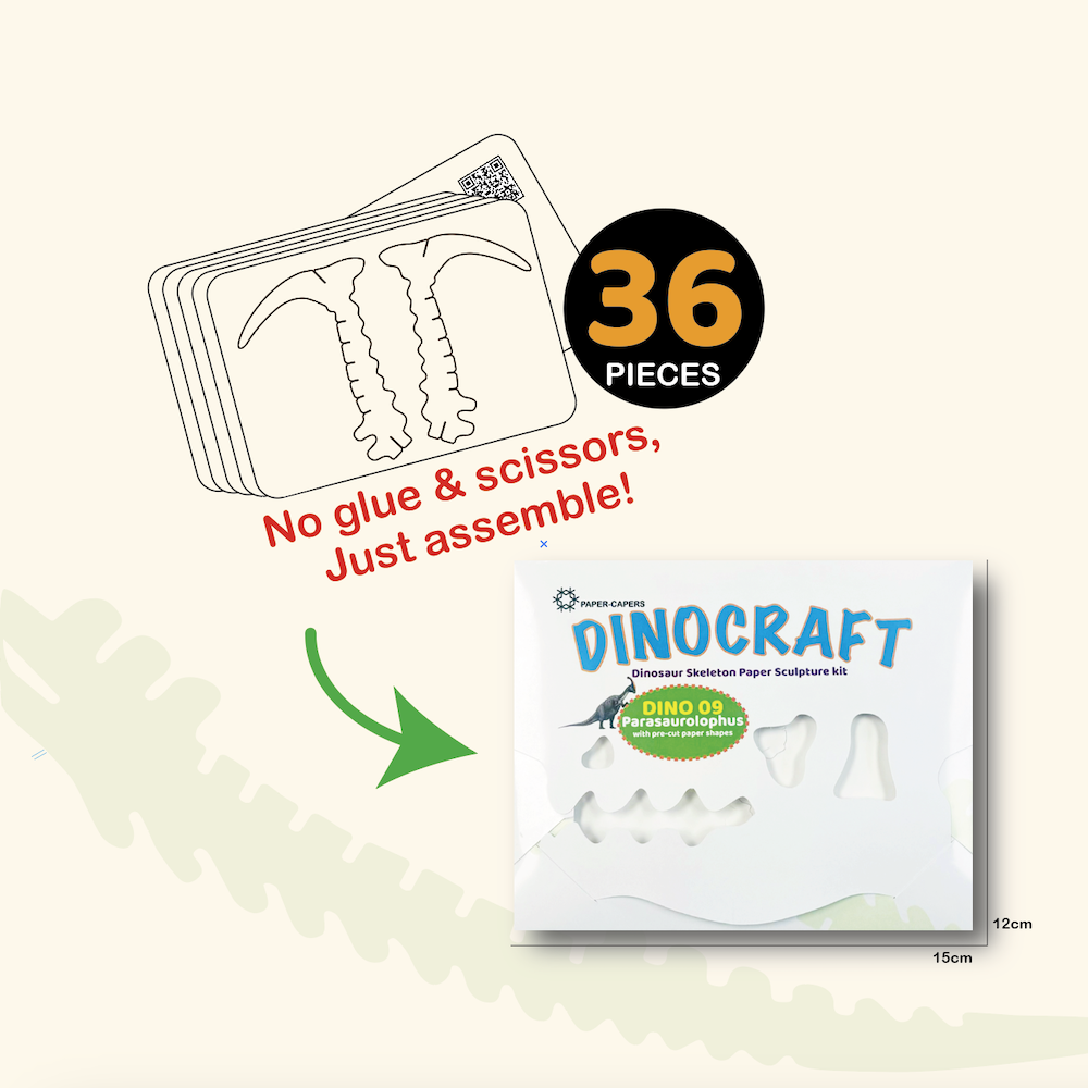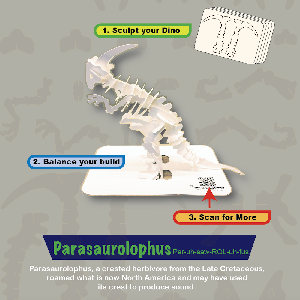 DINOCRAFT is a hands-on craft and learning series that lets kids and curious minds build their own collection of 3D dinosaur skeletons — no glue or scissors needed.