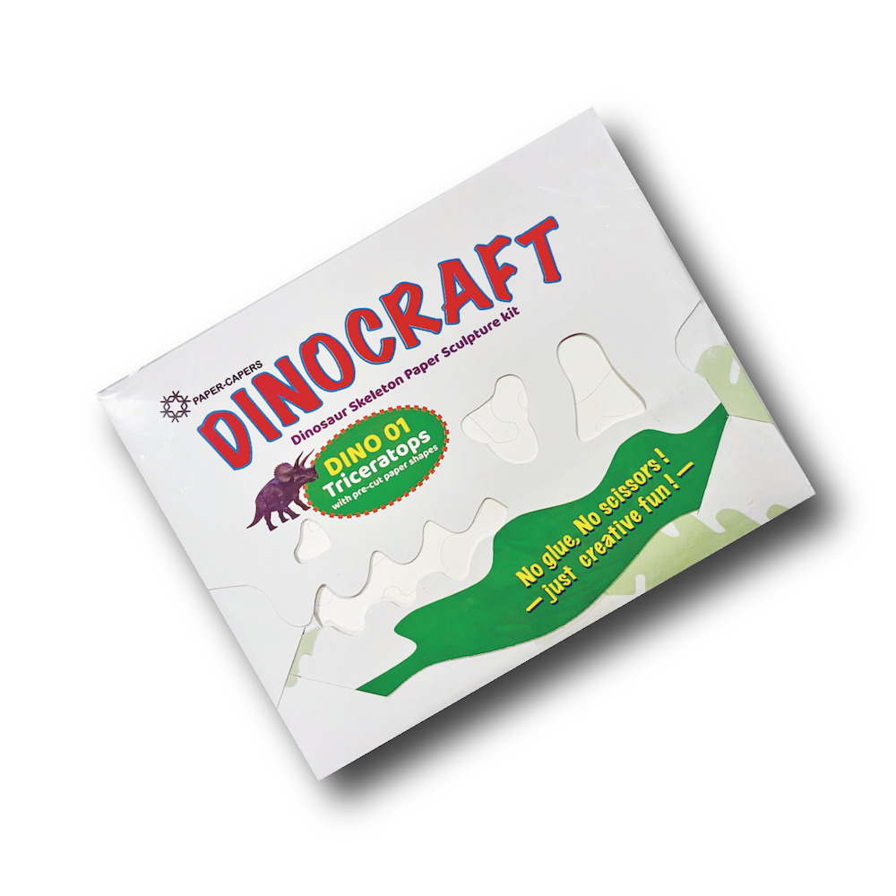 DINOCRAFT is a hands-on craft and learning series that lets kids and curious minds build their own collection of 3D dinosaur skeletons — no glue or scissors needed.