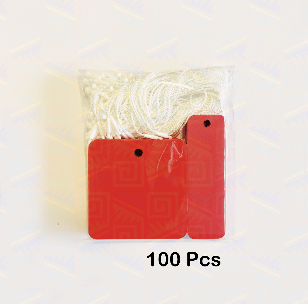 This practical and stylish set includes 100 red kraft paper tags (180gsm) — 50 large (6 × 6 cm) and 50 small (2.5 × 7.5 cm) — along with 100 nylon snap-lock strings for quick and secure attachment.